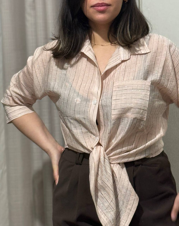 شومیز گره ای راه راه شیشه ای شاین دار